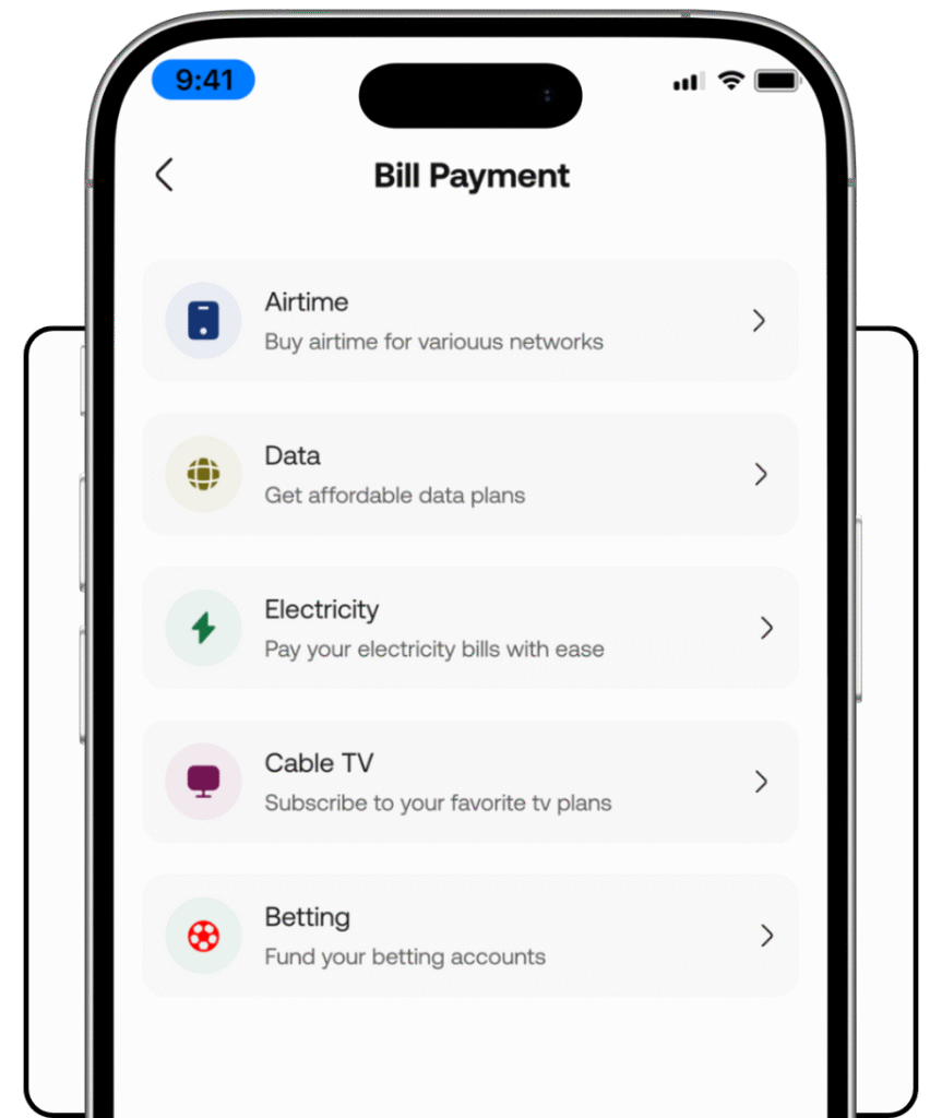 You can pay for a wide range of everyday services without any hassle. This includes topping up airtime and data for any network, renewing cable TV subscriptions like DSTV and GOtv, paying for internet services, settling electricity bills, and even funding your betting accounts.