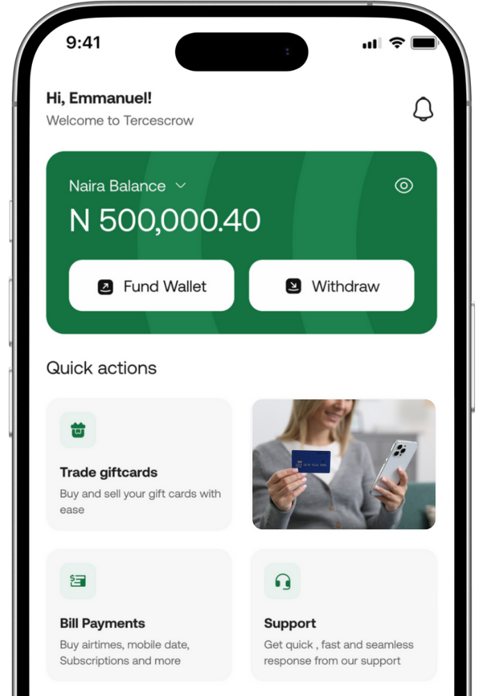 Our platform is built for speed. Once you submit your gift card for trading, the verification process typically takes just a few minutes. As soon as the trade is confirmed, the funds are credited instantly to your Tercescrow wallet, ready for you to use or withdraw.